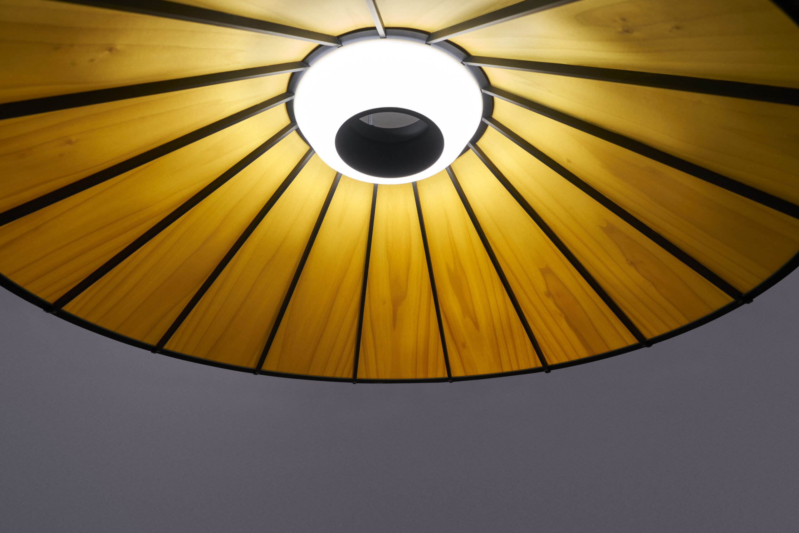 The design process focused on the interplay between geometry, material and light. Wooden lamellae were arranged to modulate luminous intensity and shadow, creating an object that feels alive under changing light conditions. The form evolved through careful study of proportion and visual rhythm, ensuring that the lamp’s presence remains composed regardless of scale or context. Material selection and detailing were calibrated to accentuate both warmth and precision.