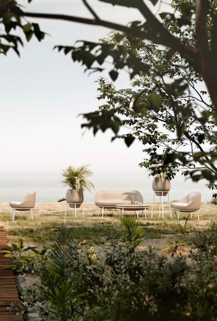 The result is a versatile outdoor collection where softness, colour and material contrast come together to create relaxed environments designed for comfort and everyday use.