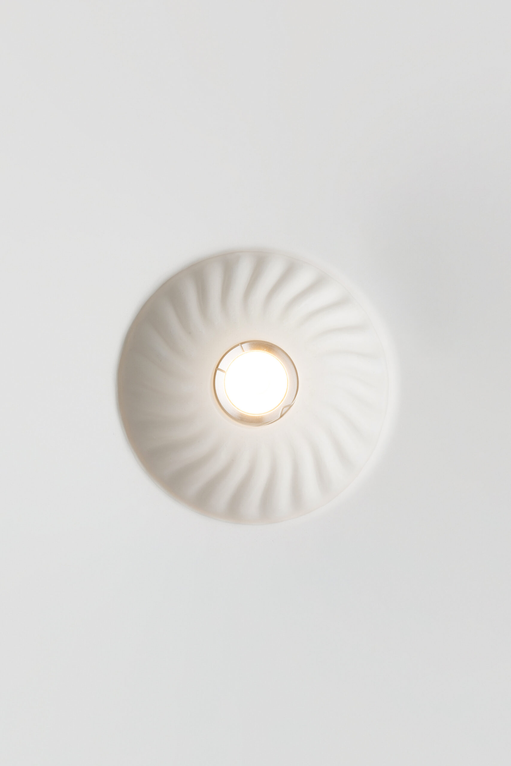 Inspired by Mediterranean landscapes, the project explores how light can emerge naturally from architectural surfaces. Rather than treating the luminaire as an added object, the design seeks to integrate illumination into ceilings and walls through texture, relief and material.