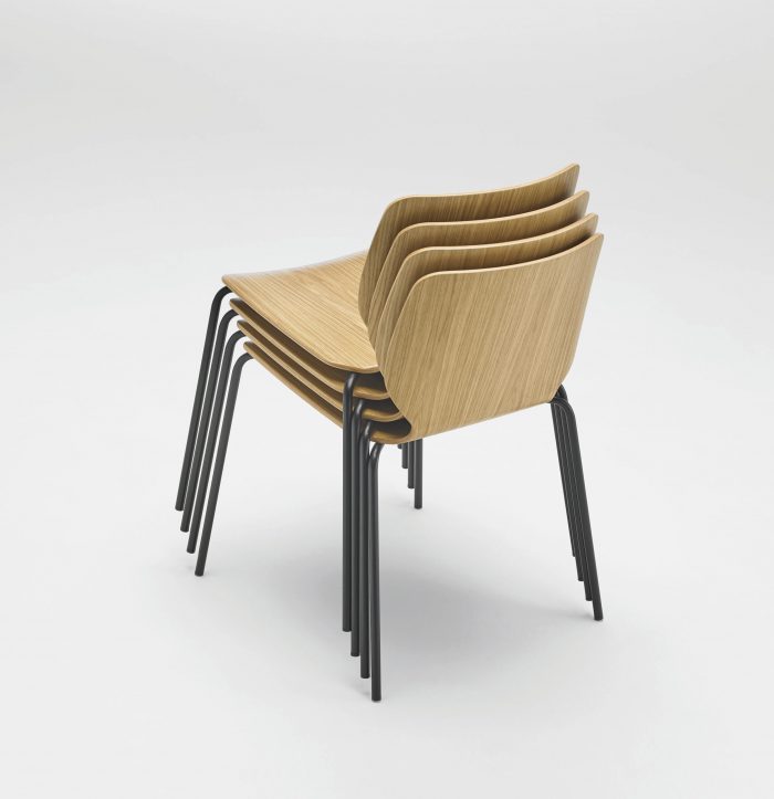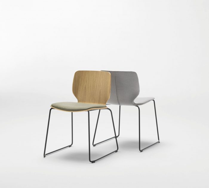 NIM is a collection of chairs and stools for versatile use, that stand out for its elegant, fluid and transversal design. The comfortable mono-shells seats are available in beech, oak and walnut veneer or come fully upholstered in two versions. The fully upholstered versions can carry a decorative piped edge on its contour in contrast to the upholstery. NIM chairs are available with three different bases: sled, four steel leg and four wooden leg. The warmth of the wooden shells and the textures of the upholsteries will inspire friendly and welcoming environments in spaces for public use and private residences.